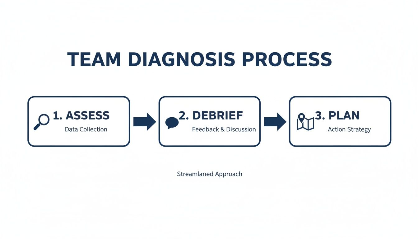 The flowchart shows a simple but powerful sequence: assess where the team is now, debrief to really understand what you have found, and only then plan the intervention.