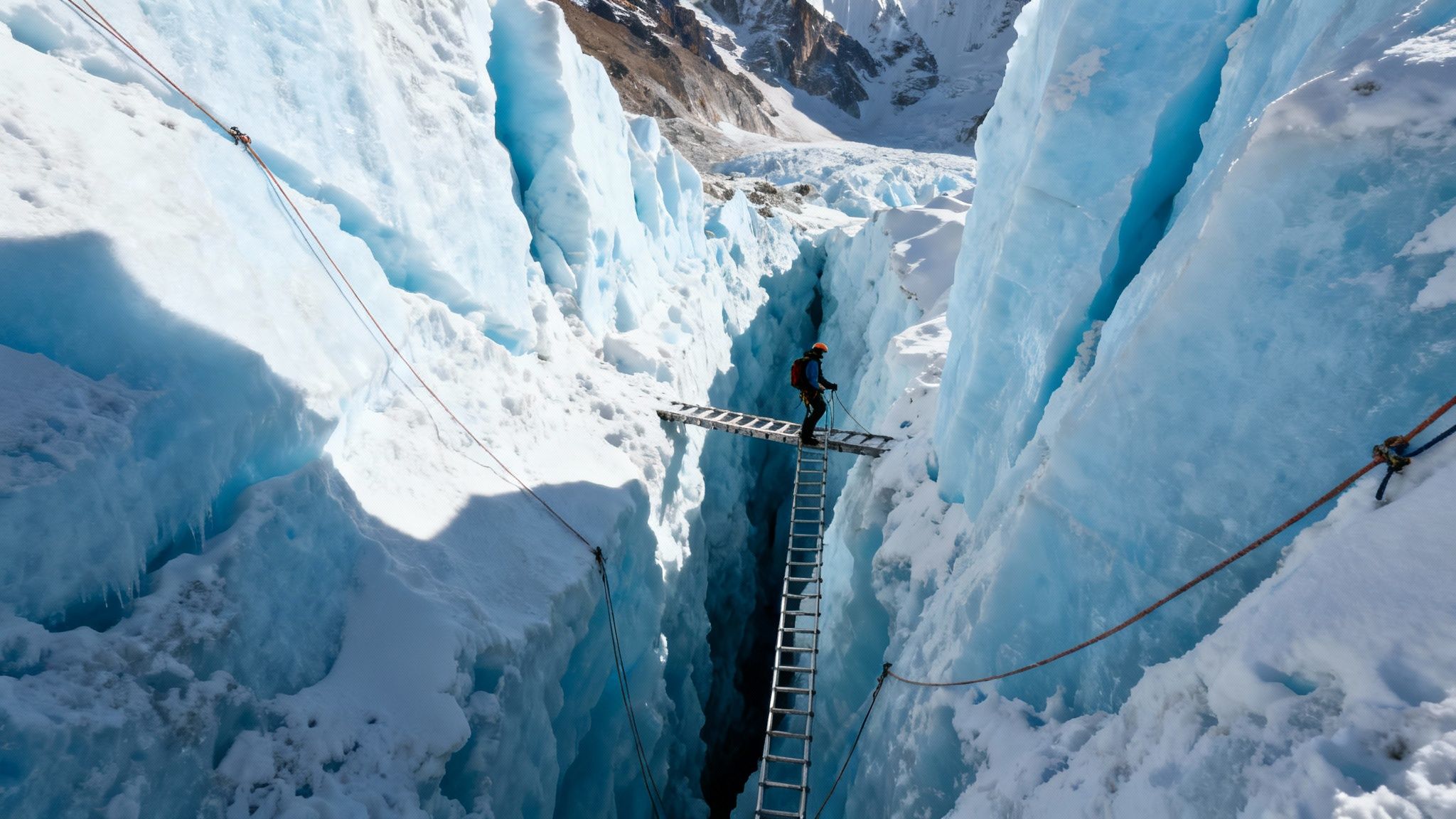 Moving through the Icefall is a calculated risk. It's typically done in the pre-dawn cold when the ice is most stable. Efficiency is everything; the goal is to minimise your time in this unstable, ever-changing zone.