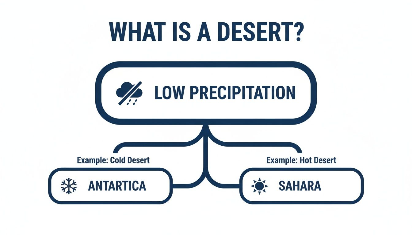 When you're planning an expedition, you learn to discard assumptions quickly. You have to focus on what actually defines the environment you're heading into. The single scientific factor that classifies a desert isn't temperature; it's the lack of precipitation.